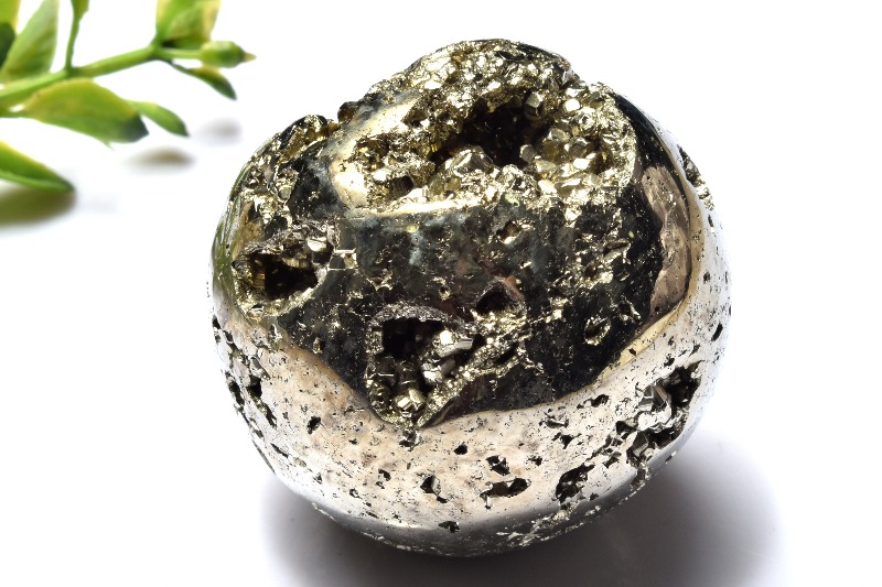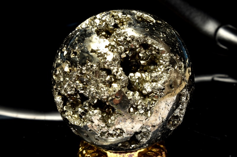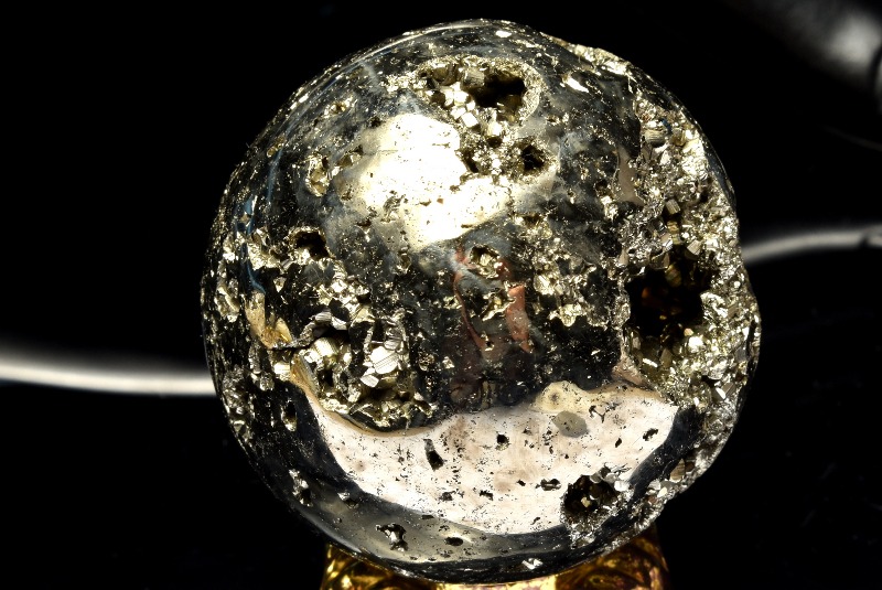 【1点物】煌めき真鍮色 パイライト 47x45mm 丸玉(台座付き) スフィア _CG6860【宅急便のみ】