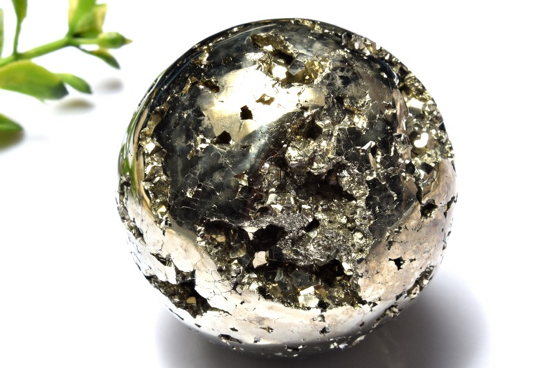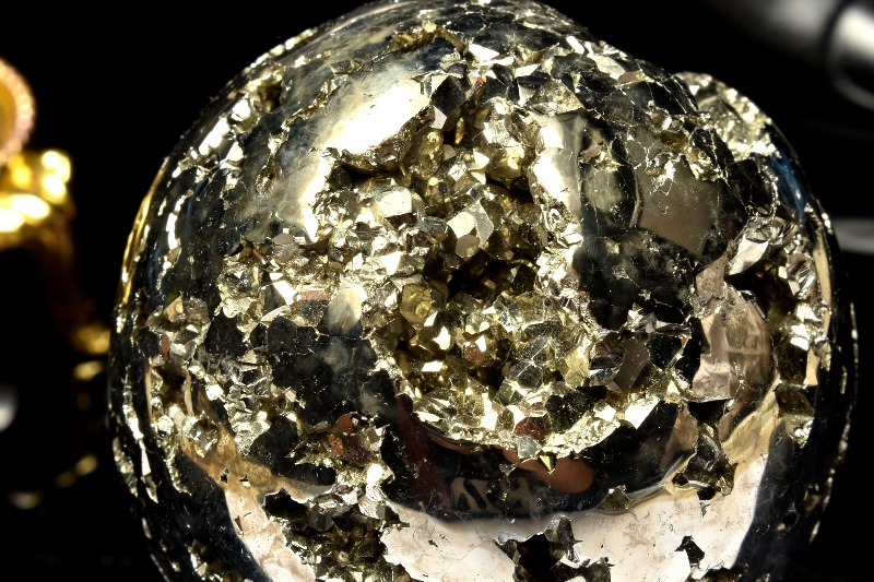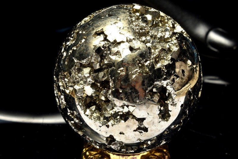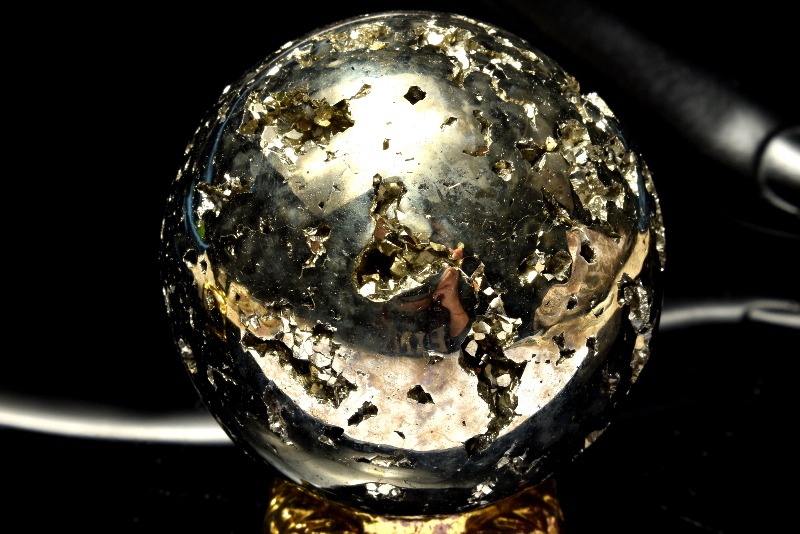 【1点物】煌めき真鍮色 パイライト 50mm 丸玉(台座付き) スフィア _CG6861【宅急便のみ】