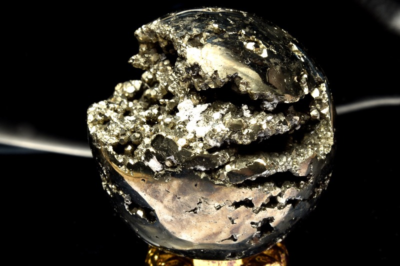 【1点物】煌めき真鍮色 パイライト 51x47mm 丸玉(台座付き) スフィア _CG6863【宅急便のみ】