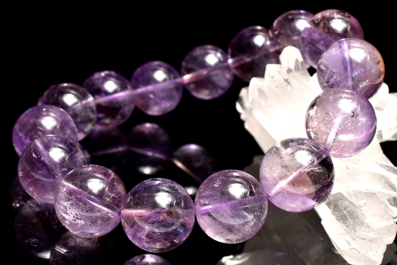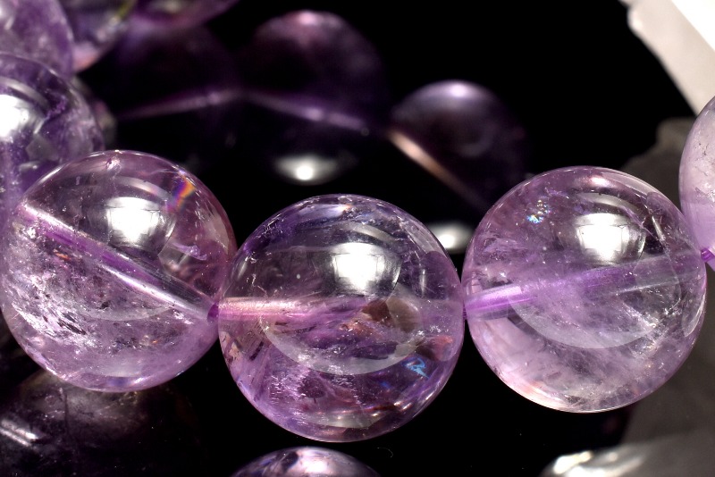 今回入荷分はアメジストの割合多めで、稀にクラックから虹が見れる珠もございます。