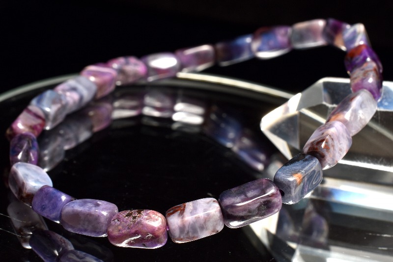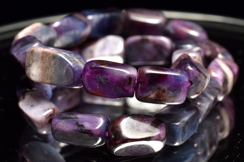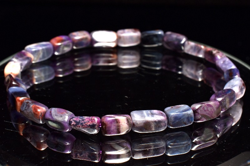【1点物】AA+☆紫の濃淡が織りなす上級の美 スギライト(杉石) 6-9x4-5.5mm チューブカット ブレスレット _MC2107