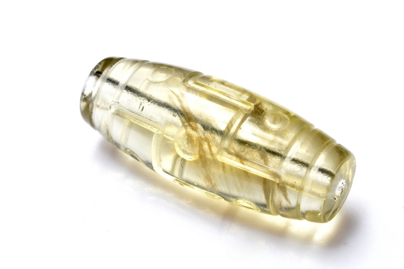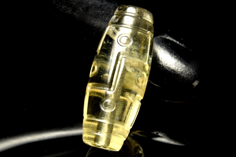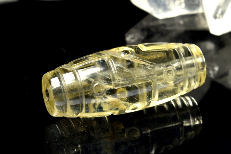 【1点物】AAA激レア☆透明レモンカラー◇ リビアングラス 29x12mm 九眼天珠(貫通穴) ビーズ _PC7808