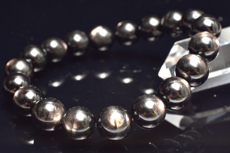 【1点物】高品質◇金属光沢 ハイパーシーン(紫蘇輝石) 10-10.5mm ブレスレット _MC2137