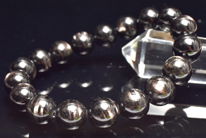 【1点物】高品質◇金属光沢 ハイパーシーン(紫蘇輝石) 11mm ブレスレット _MC2141