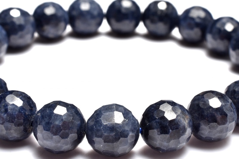 【1点物】凛とした輝きを放つ深い青◇ サファイア 9.5-10mm 128面カット ブレスレット _MC2370