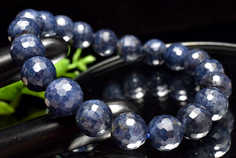 【1点物】凛とした輝きを放つ深い青◇ サファイア 9.5-10mm 128面カット ブレスレット _MC2373
