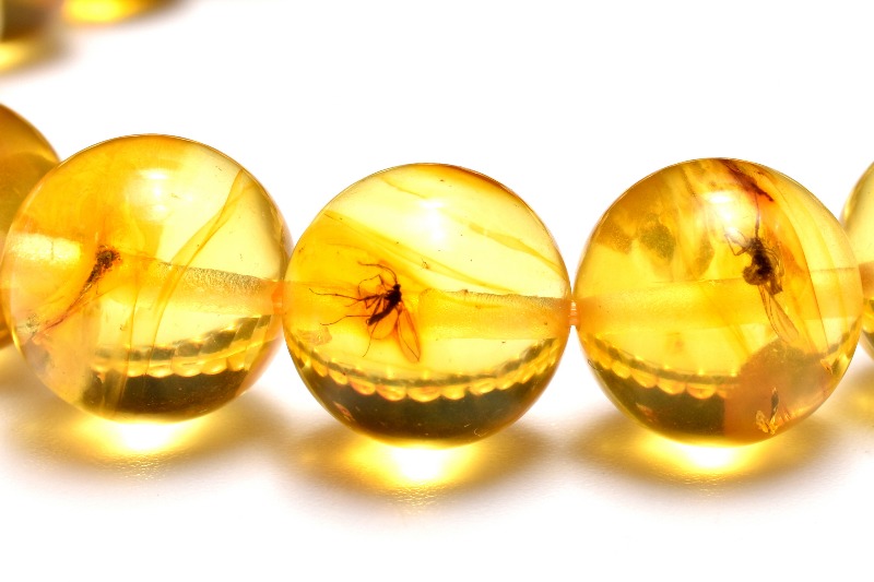 サイズ・種類も様々な昆虫が閉じ込められた天然琥珀のブレスレットです。
