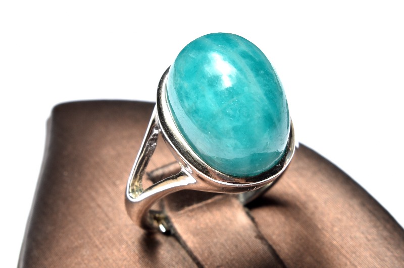 【1点物】Silver925◇ロシア産 アマゾナイト 15x11mm オーバル 指輪リング(サイズ調整可) _PC7930
