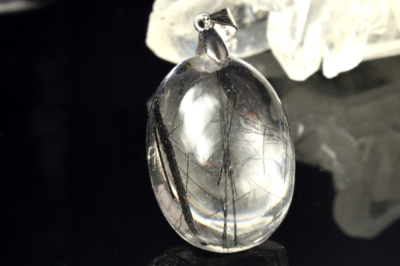 【1点物】Silver925☆AAクリア ブラックトルマリンインクォーツ 24x17mm オーバル ペンダントトップ _PC7978