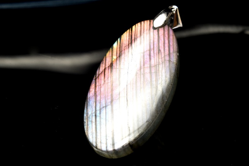 ラブラドライトの特色は、なんと言ってもその美しい閃光です。冷たそうでいて、非常に深みのある光は「ラブラドレッセンス(ラブラド光線)」と呼ばれます。