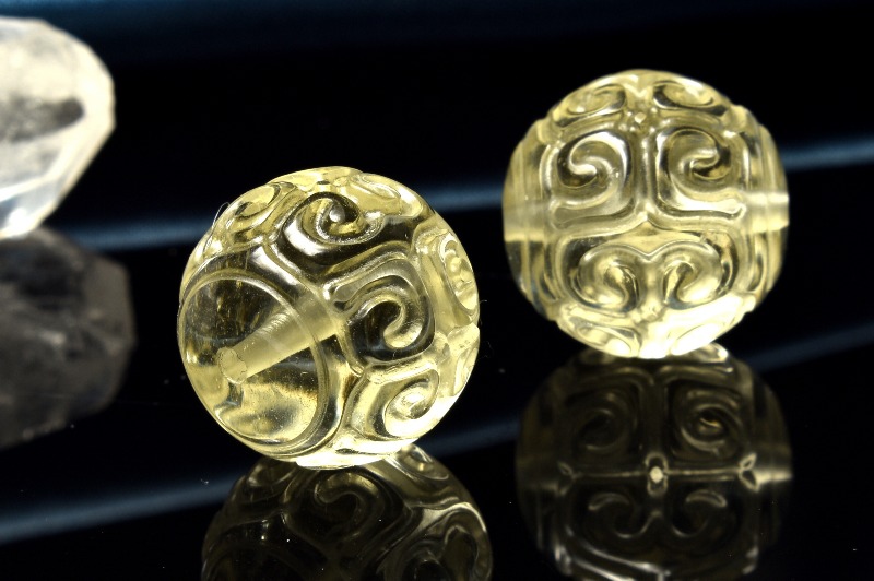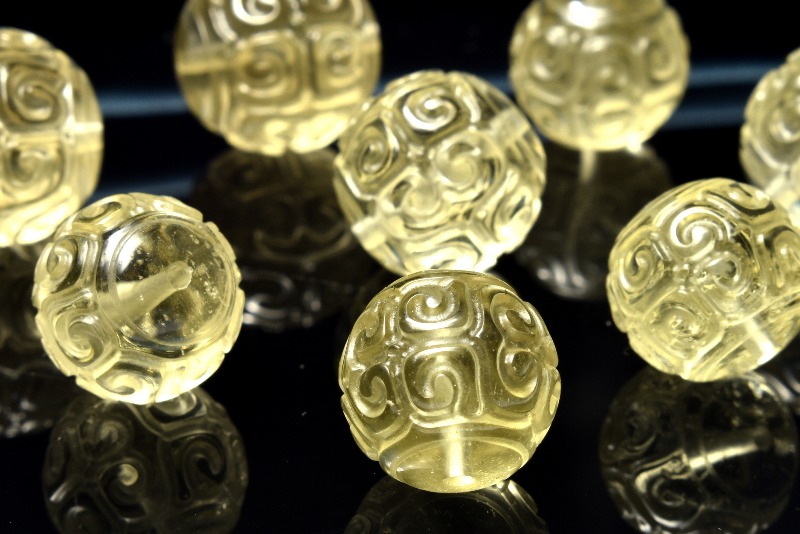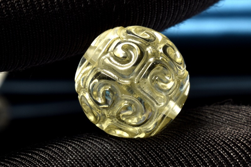 繊細彫刻 リビアングラス 14.5-15.5mm マニ車 ビーズ 1個売り _PRG2398-3