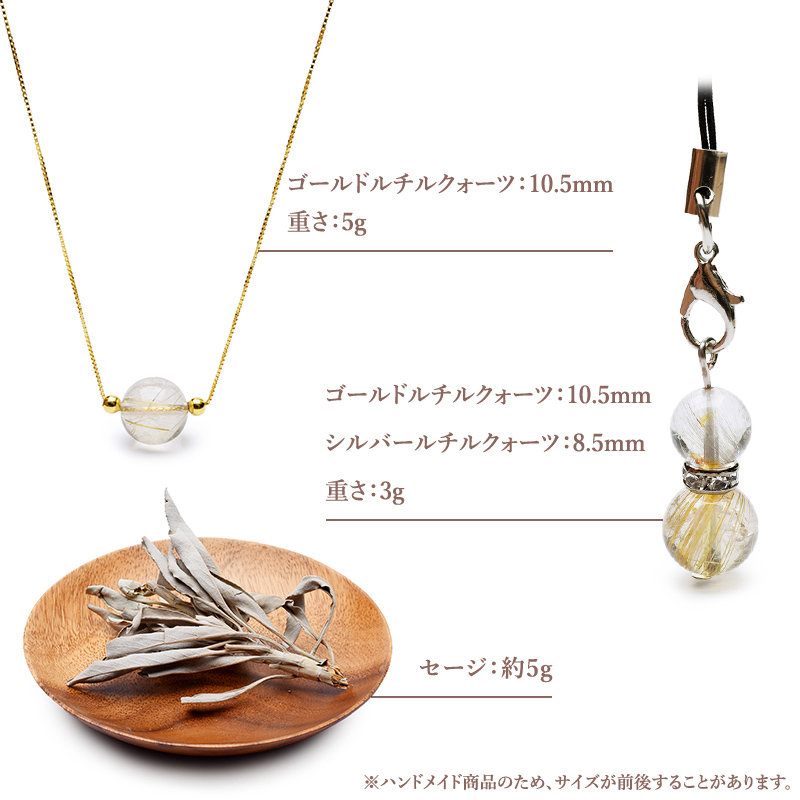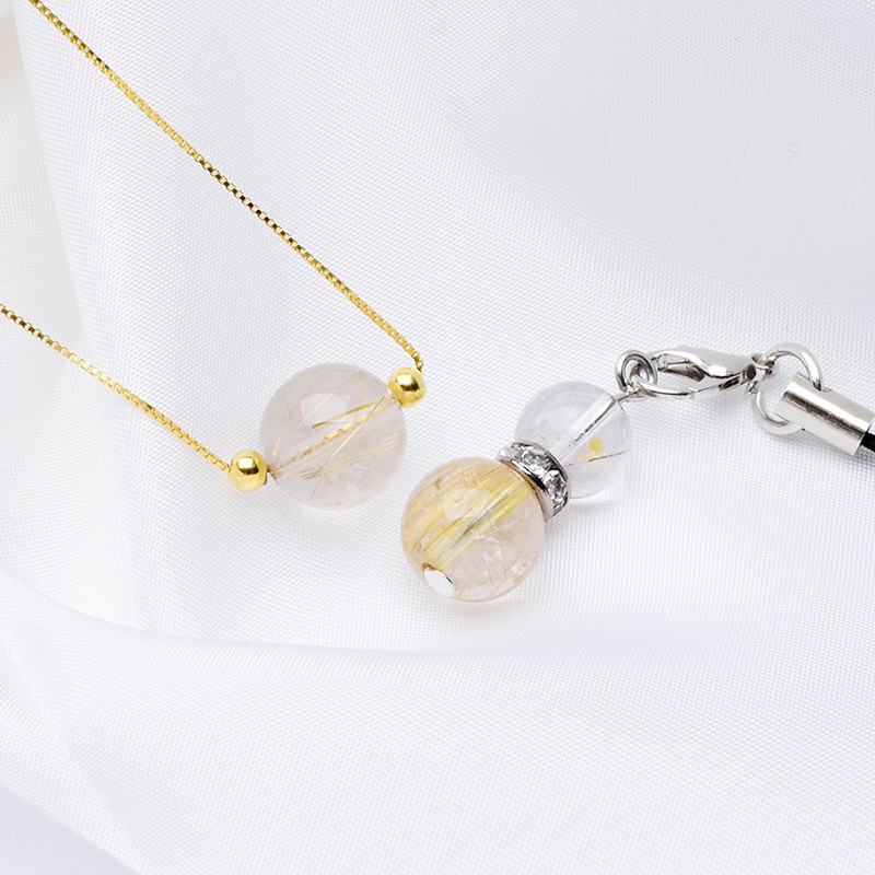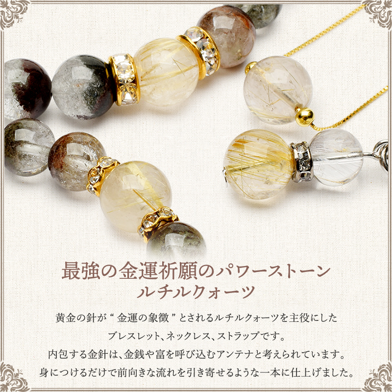 ネックレスやストラップは品質の良いゴールドルチルクォーツが映えるようにシンプルなデザインに!