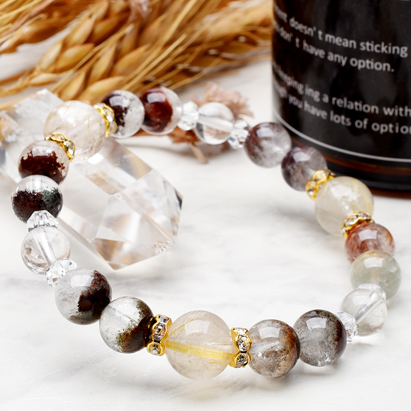 癒し効果の高いマルチカラーのガーデンクォーツや希少カラーのシルバールチルクォーツも贅沢に使用いたしました!